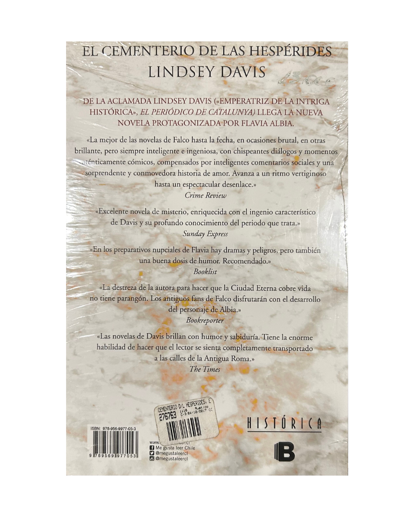 En esta apasionante novela histórica, Lindsey Davis nos presenta otro caso protagonizado por Flavia Albia, la intrépida detective romana y heredera de Marco Didio Falco. Cuando unos obreros encuentran huesos humanos enterrados en el jardín de un futuro bar llamado El cementerio de las Hespérides, Flavia se ve envuelta en una investigación que saca a la luz secretos oscuros, crímenes antiguos y conexiones inesperadas.