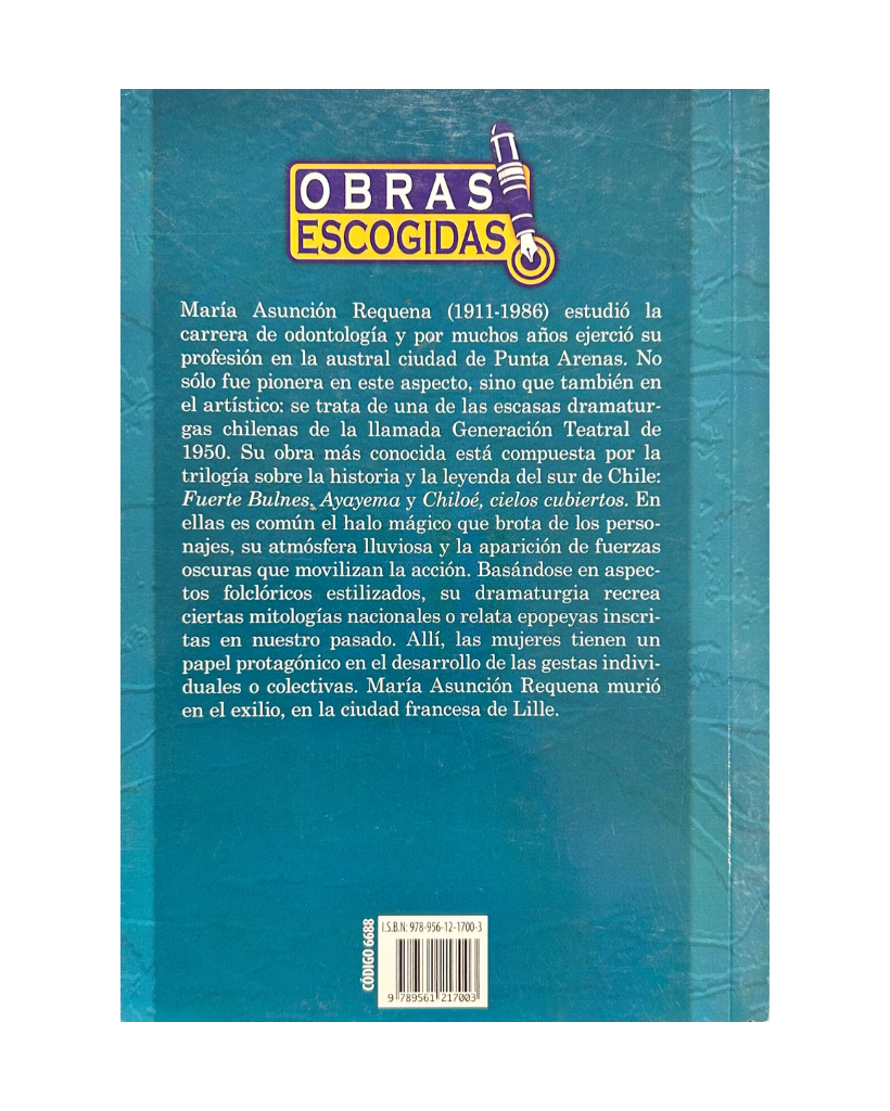 Este libro contiene dos de las obras más emblemáticas de la escritora chilena María Asunción Requeña, perteneciente a la Generación de 1950. En ellas relata las peripecias, mitos e historias de hombres y mujeres que fundaron pueblos y ciudades alejadas del centro y que continúan luchando en contra de la adversidad de la naturaleza.