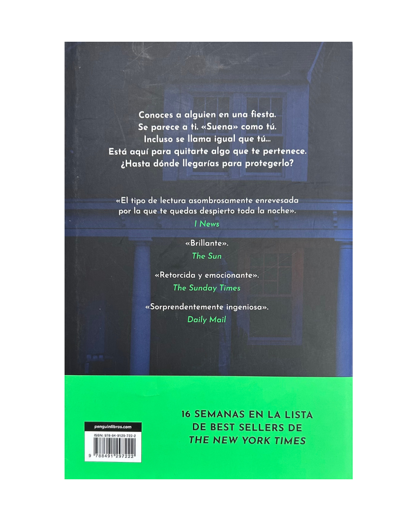 Conoces a alguien en una fiesta. Se parece a ti, "suena" como tú. Incluso se llama igual que tú... Está aquí para quitarte algo que te pertenece. ¿Hasta dónde llegarías para protegerlo? Evie Porter tiene todo lo que cualquier chica podría desear: un novio que la quiere, una casa con jardín y unas amigas fantásticas. Pero Evie Porter no existe. La identidad es lo primero: Evie Porter. Una vez que su misterioso jefe, el señor Smith, le da un nombre y una ubicación, aprende todo lo que hay que saber sobre la ciudad y sus habitantes. Luego, el objetivo: Ryan Sumner. La ultima pieza del rompecabezas es el trabajo. Pero para Evie este trabajo es diferente. Ryan se ha metido bajo su piel y sus sueños y anhelos verdaderos se han colado en la relación, hasta tal punto que ha empezado a imaginarse otro tipo de vida para si misma, una en la que su jefe no mueva los hilos. Evie no puede cometer ningún error, especialmente después de lo que paso la ultima vez Porque lo único que ha intentado mantener siempre al margen de sus actividades, la única identidad a la que siempre podría volver (su verdadera identidad), acaba de llegar a esta ciudad. A medida que el pasado de Evie comienza a alcanzarla, ¿podrá ir un paso por delante para salvar su futuro? El tipo de lectura asombrosamente retorcida por la que te quedas despierto toda la noche.