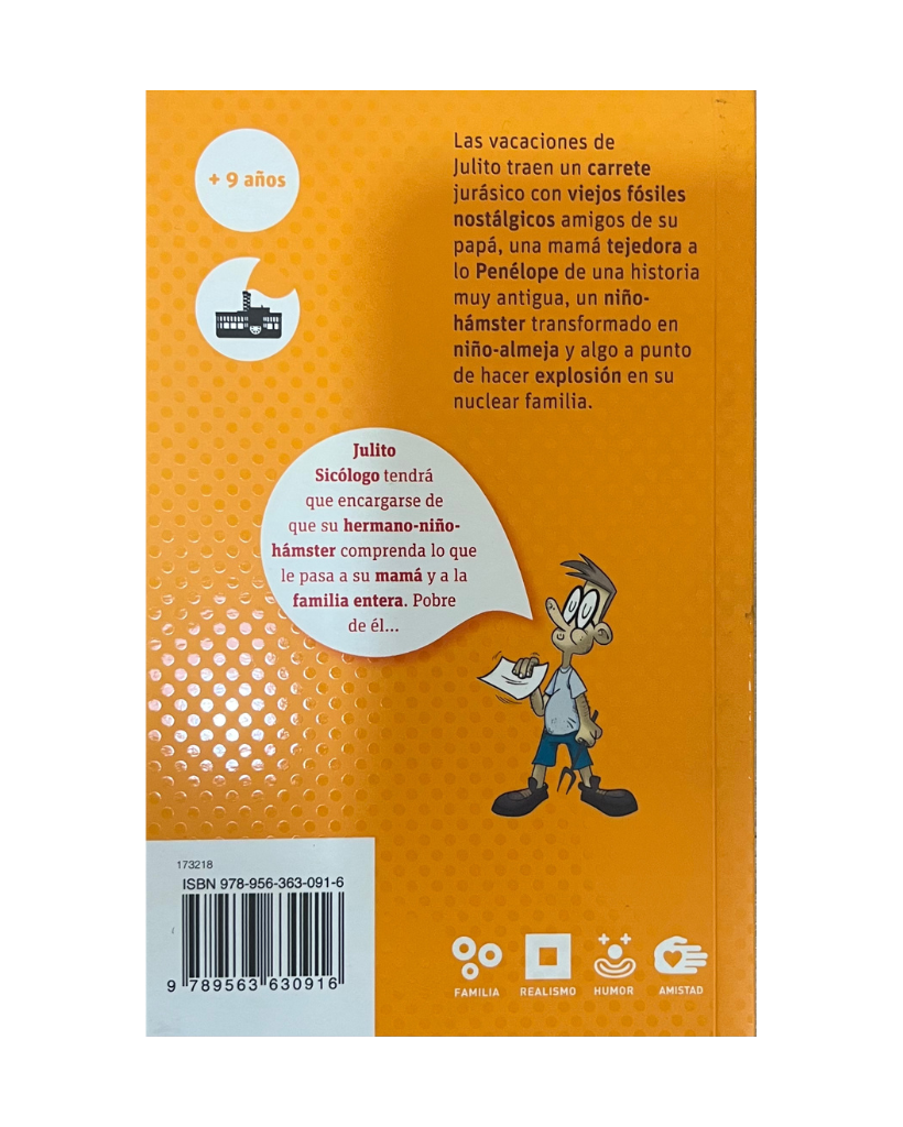 Las vacaciones de Julito traen un carrete jurásico con viejos fósiles nostálgicos amigos de su papá, una mamá tejedora a lo Penélope de una historia muy antigua, un niño-hámster transformado en niño-almeja y algo a punto de hacer explosión en su nuclear familia.
