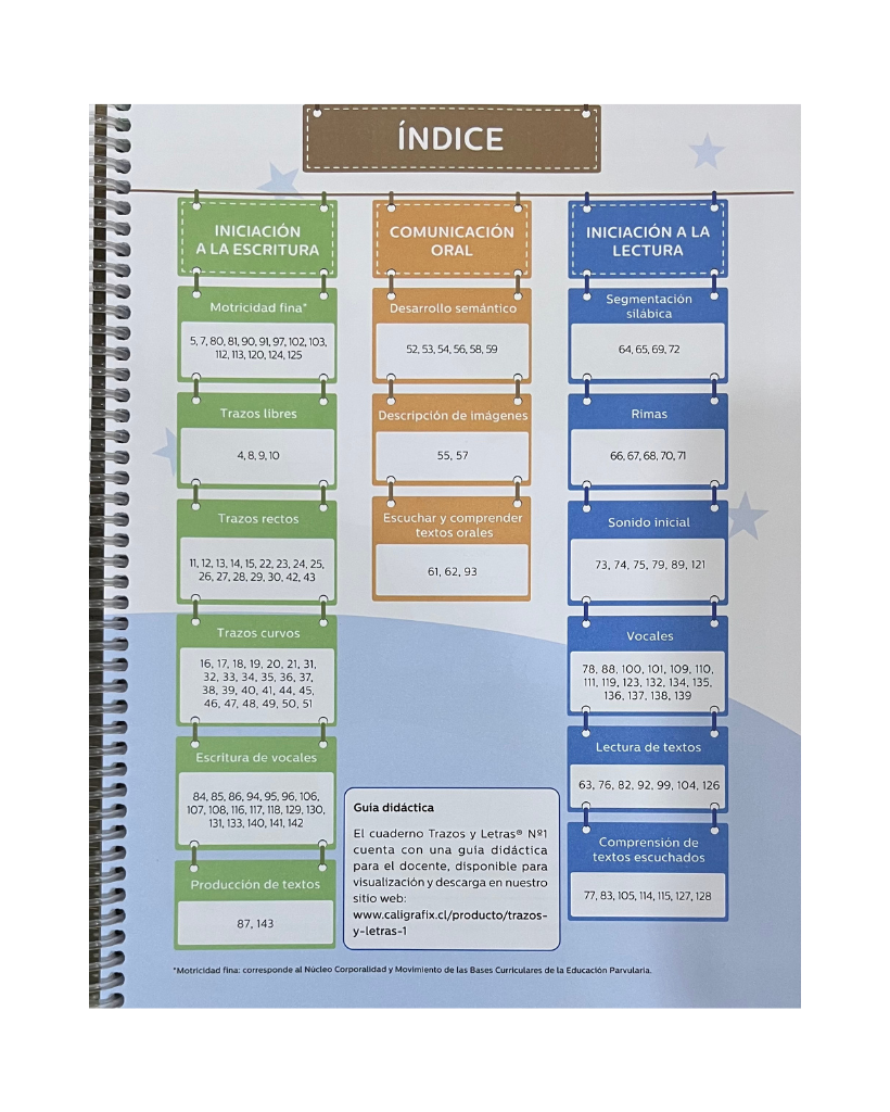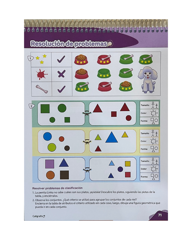 El cuaderno desarrolla las nociones básicas y el pensamiento lógico matemático a través de estimulantes actividades. Tales como: Orientación temporal y espacial, comparación, clasificación y seriación, patrones y resolución de problemas simples, figuras y cuerpos geométricos, cuantificación, números hasta el 20, adición y sustracción y resolución de problemas.