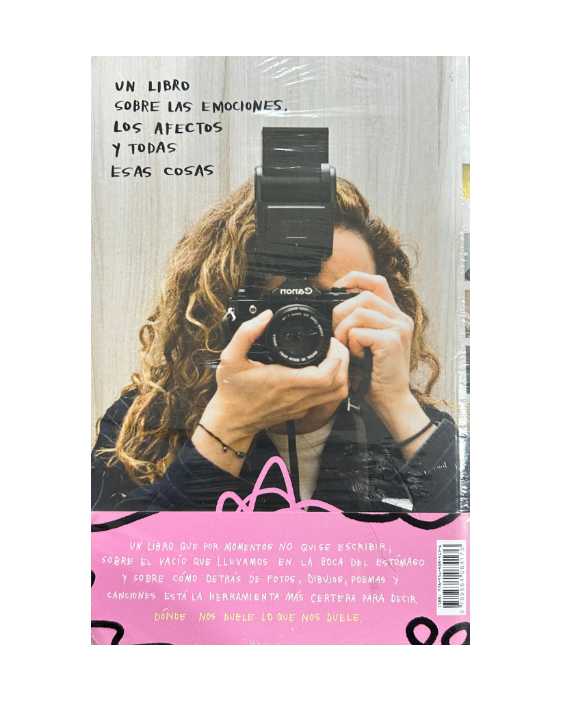Un libro sobre las emociones, los afectos y todas esas cosas. Un libro que por momentos no quise escribir, sobre el vacío que llevamos en la boca del estómago y sobre cómo detrás de fotos, dibujos, poemas y canciones está la herramienta más certera para decir dónde nos duele lo que nos duele.