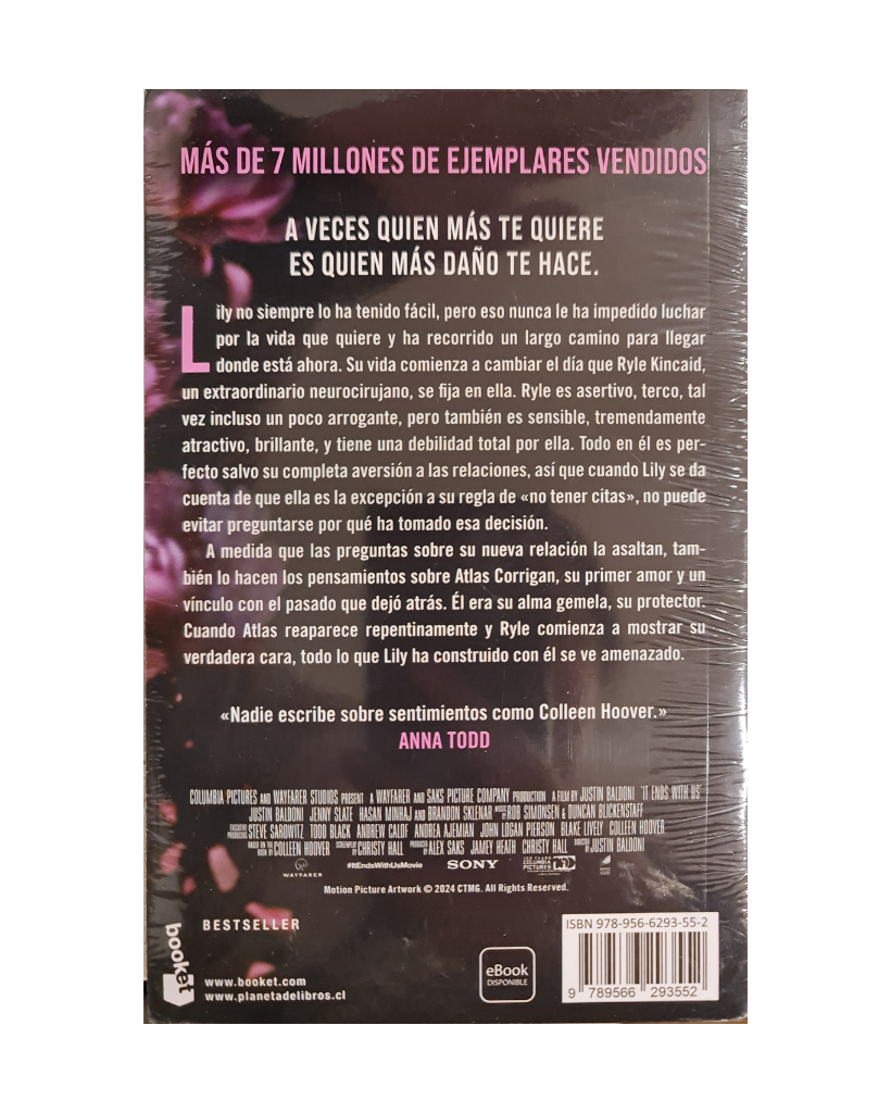 Lily no siempre lo ha tenido fácil, pero eso nunca le ha impedido luchar por la vida que quiere y ha recorrido un largo camino para llegar donde está ahora. Su vida comienza a cambiar el día que Ryle Kincaid, un extraordinario neurocirujano, se fija en ella. Ryle es asertivo, terco, tal vez incluso un poco arrogante, pero también es sensible, tremendamente atractivo, brillante y tiene una debilidad total por ella. Todo en él es perfecto salvo su completa aversión a las relaciones, así que cuando Lily se da cuenta de que ella es la excepción a su regla de «no tener citas», no puede evitar preguntarse por qué ha tomado esa decisión. A medida que las preguntas sobre su nueva relación la asaltan, también lo hacen los pensamientos sobre Atlas Corrigan, su primer amor y un vínculo con el pasado que dejó atrás. Él era su alma gemela, su protector. Cuando Atlas reaparece repentinamente y Ryle comienza a mostrar su verdadera cara, todo lo que Lily ha construido con él se ve amenazado.