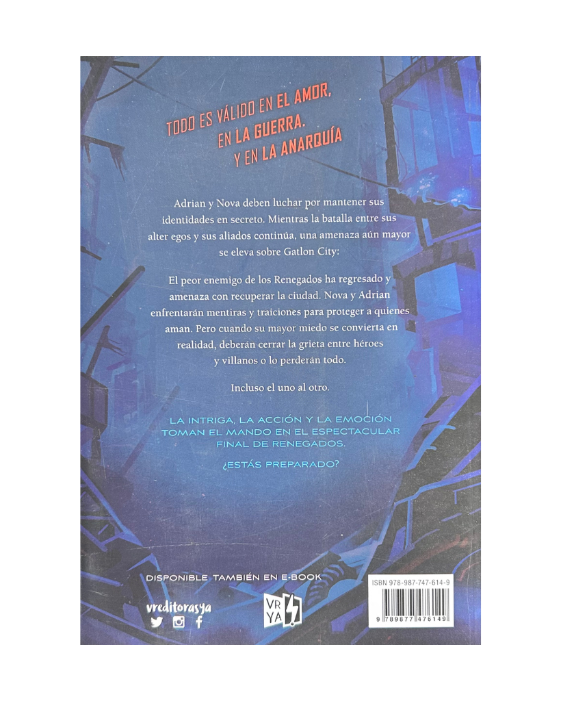 Todo es válido en el amor, en la guerra y en la anarquía. Adrian y Novadeben luchar oir mantener sus identidades en secreto. Mientras la batalla entre sus alter egos y sus aliados continúa, una amenaza aún mayor se eleva sobre Gatlon City. El peor enemigo de los Renegados ha regresado y amenaza con recuperar la ciudad. Nova y Adrian enfrentarán mentiras y traicionespara proteger a quienes aman. Pero cuando su mayor miedo se convierta en realidad, deberán cerrar la grieta entre héroes y villanos o lo perderán todo. Incluso el uno al otro.